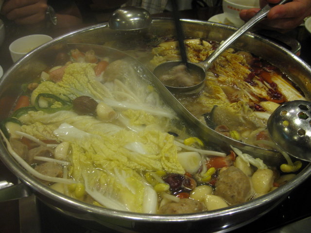 鍋が半分に仕切ってあって、半分が普通、半分が辛くなってます。