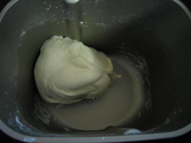 これを ホームベーカリーの ピザ生地コースでこねて、 発酵?は取り消しで中断。