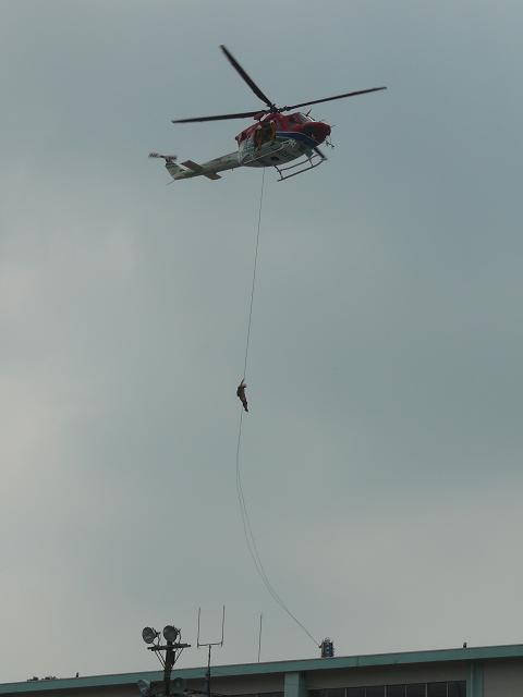 はしご車で、3~4階 から人を救助する訓練もやってました。(撮りませんでしたが。)