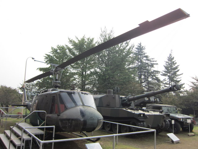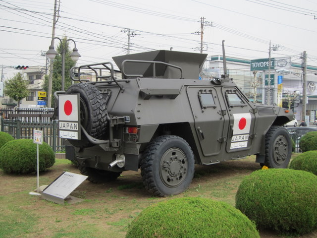 自衛隊車両が展示してある。上に乗れないのが残念だが。