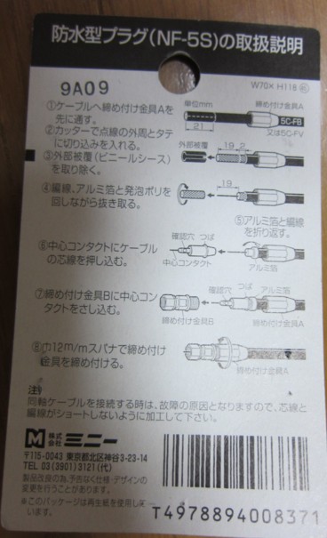 5C なので ホームセンターカンセキで F型端子(防水タイプ)を買ってきました。