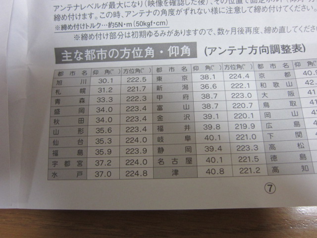 | 仰角(上下)は 取説の地域別角度を参考に |