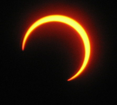 丁度、金環日食の始まりあたりで、太陽が雲に隠れたのですが