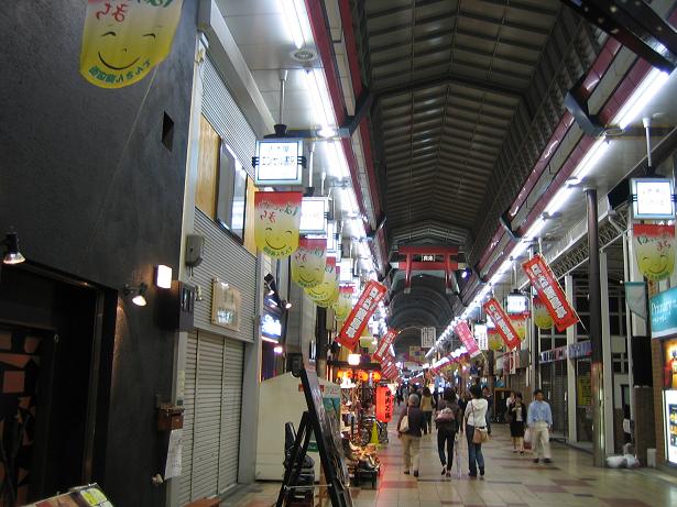 夕食は、凄く長いアーケード にある