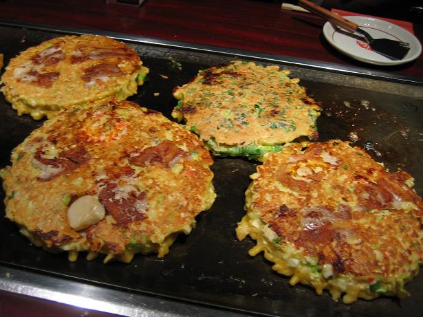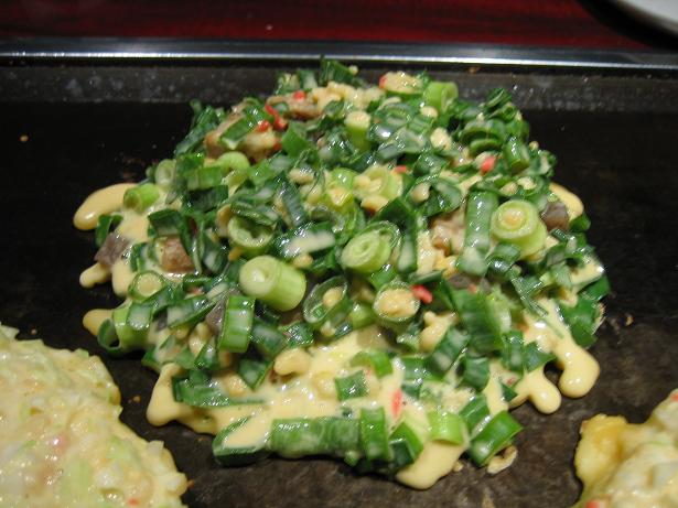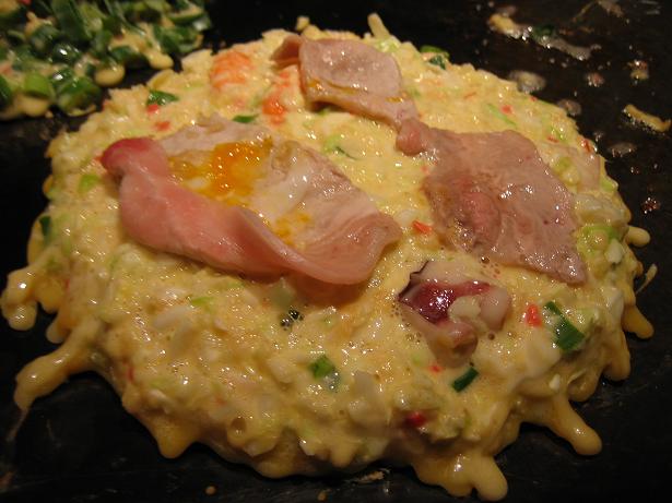お店の、お姉さんが まぜまぜして 焼いてくれます。 手際がいい!