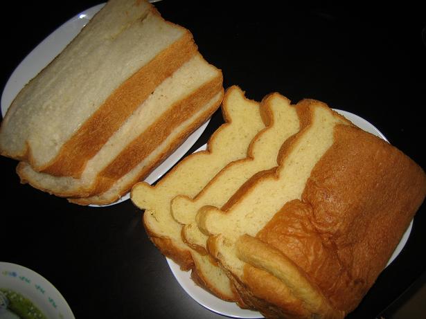 デニッシュ風 ていうのを焼いてみた。 スライスしたのは右下。 左上は食パン(焼き色:濃)
