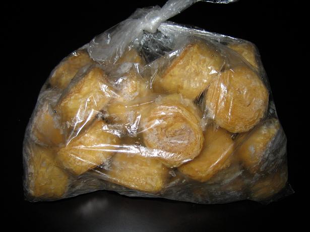 冷凍のお徳用 揚げゆば を 油抜きして、