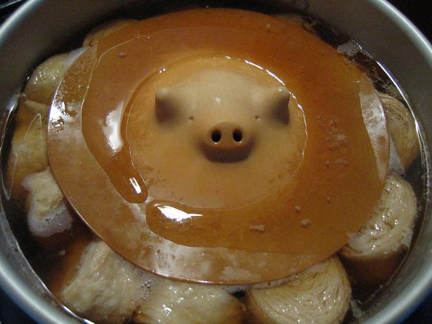 書いてある通りに、料理します。 最後は 落とし豚(蓋)をして。10分くらい煮て終わり。