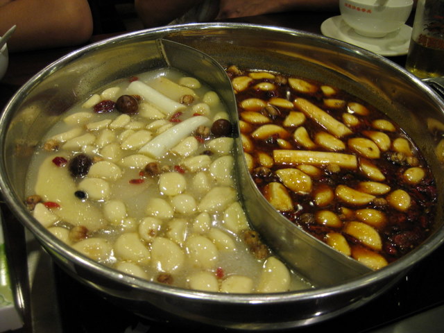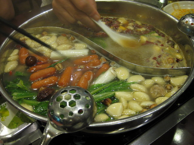 鍋が半分に仕切ってあって、半分が普通、半分が辛くなってます。