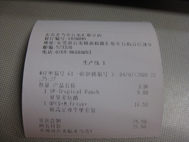 本日は、夜1人。マクドナルドです。