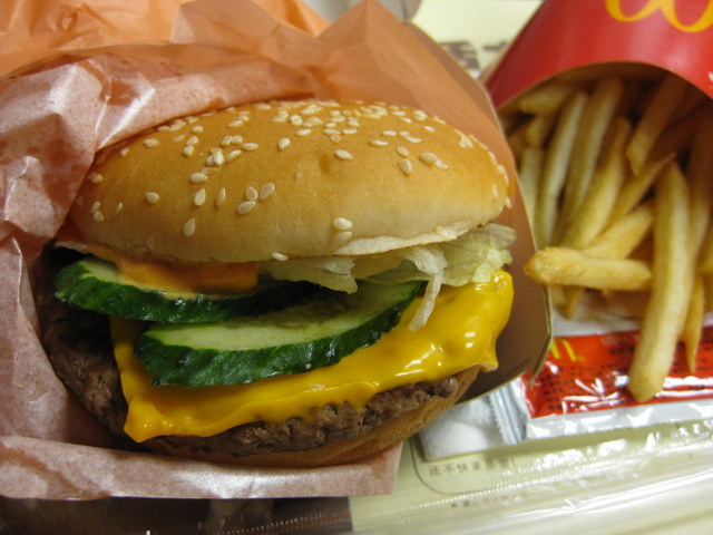 日本のより 全てが大きい パンズは気泡の大きい 粗い食感、胡椒の利いたパテ チーズは薄味、ソースも控えめ。 |