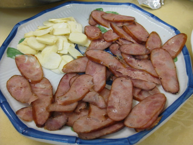 キュウリ、梨、酢漬け大根?、硬くなった生ハムのような肉。