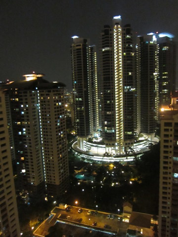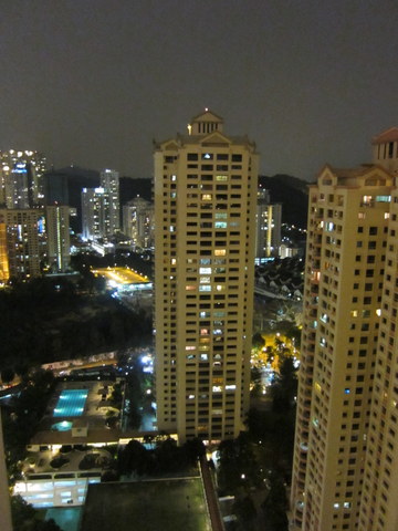 | 玄関通路から見えた夜景と、コンドミニアムのプール(時間外) |