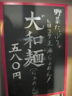 お店のイチオシが つけ麺から 大和麺に変わってます。w