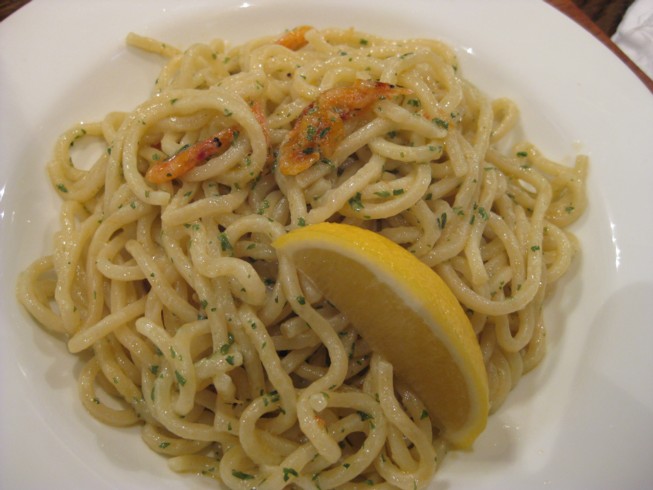 太く縮れた麺は特注麺とのことで、表面が硬めで桜海老と軽く炒められて 海老の風味豊か。