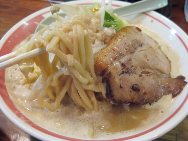 粉を微かに感じる中細ストレートの麺と スープの相性が抜群です。