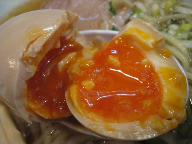 味玉も半熟橙色の黄身、塩分控えめで卵そのものの味!(も少し塩分あるほうが好み)
