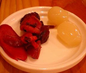 ラッキョウ、 漬け物のセルフサービス |