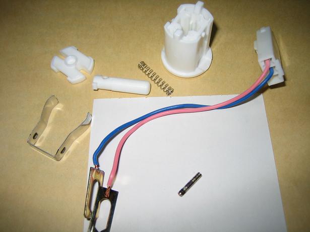 | これが スイッチ | マイナスドライバーで こじって引っ張り 出しました。 意外に簡単に取れる 写真は中継コネクタを 外した後 |