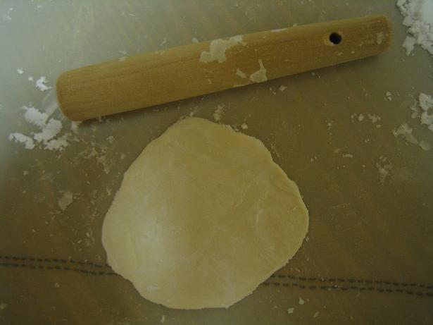 麺棒で円くのばして、餃子の皮の出来上がり。