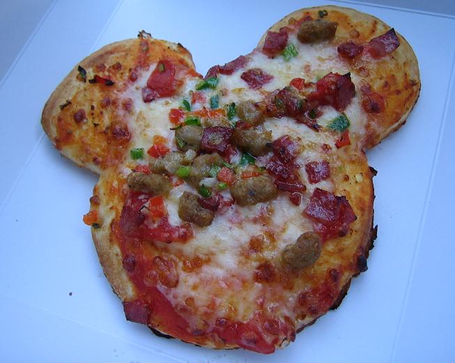 昼食はピザと、スティッチのランチバック?
