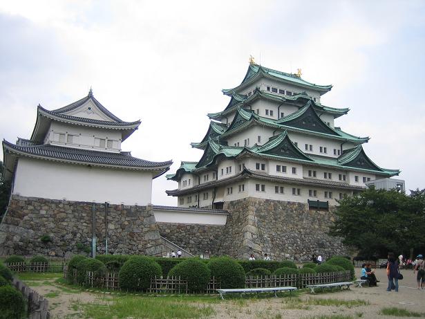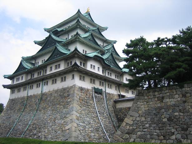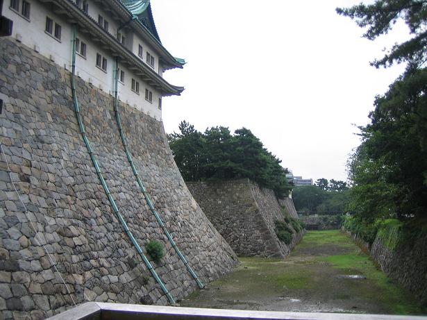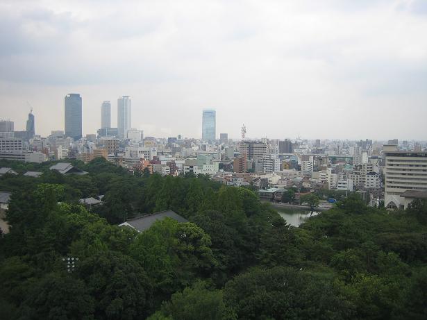 何かの石室と 天守閣からの眺望。ミッドランド スクエア is と高層ビル群が見えます。