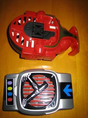 赤いぼたん押して「最初から、クライマックスだぜ!」(モモタロス)と遊べる。