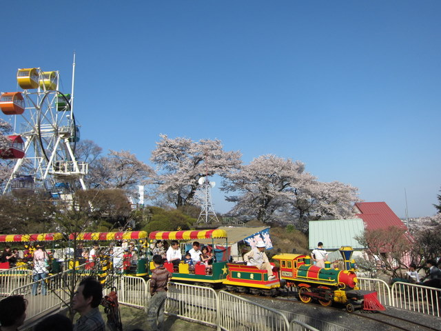 この小さめの観覧車に乗り込んで木の上から見る桜も不思議でなかなか綺麗です。