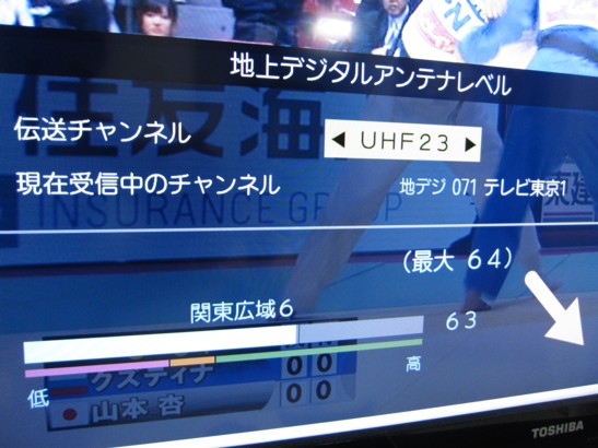 アンテナがローチャンネル用なので 東京タワーの方向に向けます。