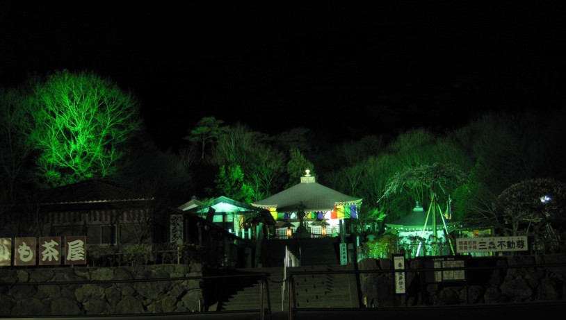 写真を撮ってみました。 裏山の木々を 緑色にライトアップしていて