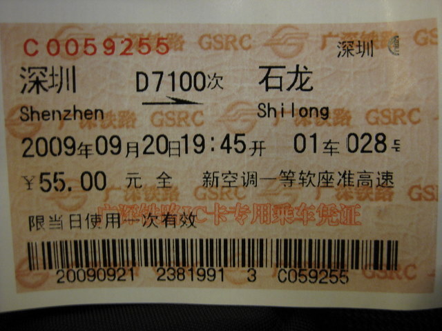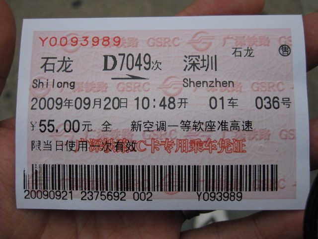 羅湖 Lo Wu から乗ります。 |