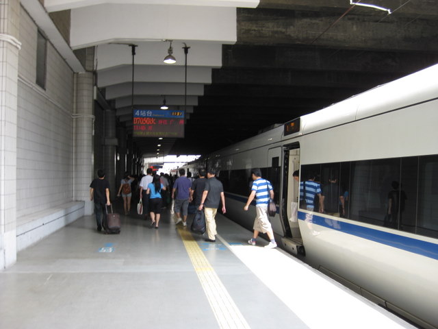 | 160kmくらい出ます | 深圳到着 | 出国手続きをして 川を渡ると香港 香港側は 国境が厳重になってます。 |