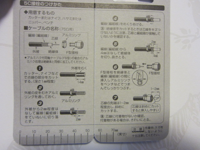 F型端子を買いに行くも、ホームセンターでは 4C と 5C が売っていて どちらか分からず。