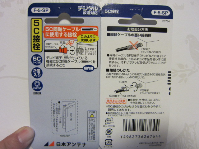 5C なので ホームセンターカンセキで F型端子(防水タイプ)を買ってきました。