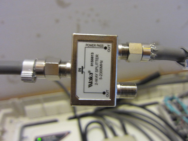 電話で妻に マルチメディアBOX内の 同軸ケーブルの 線に書いてある文字を見てもらい