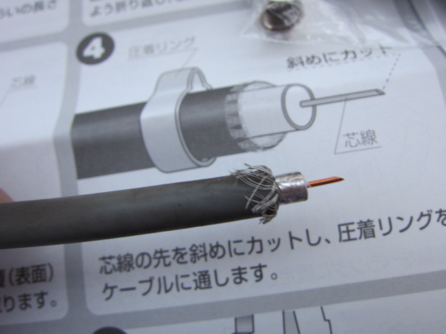 今回は、取り付けキットに付属しているF端子付き4C同軸ケーブル15mは